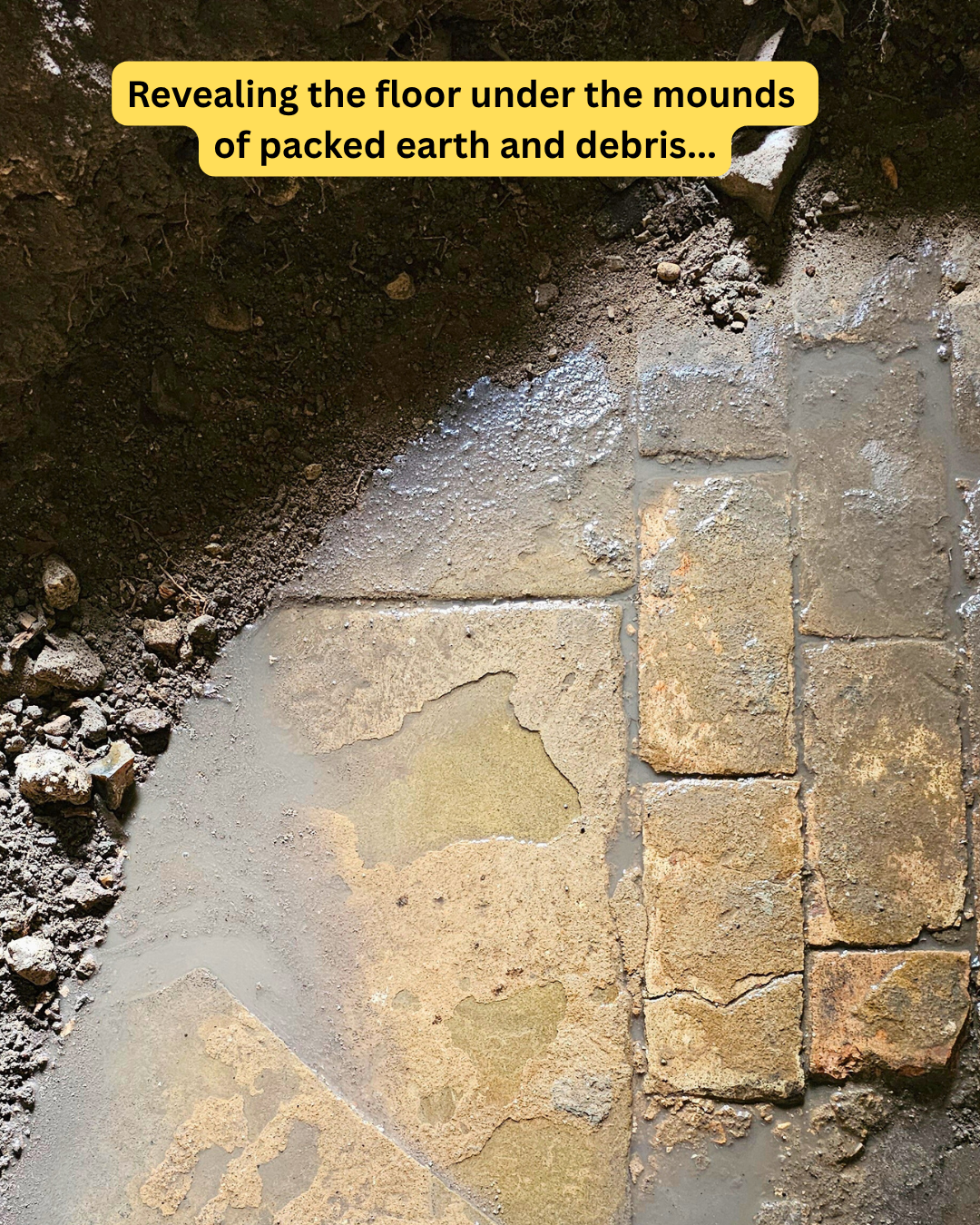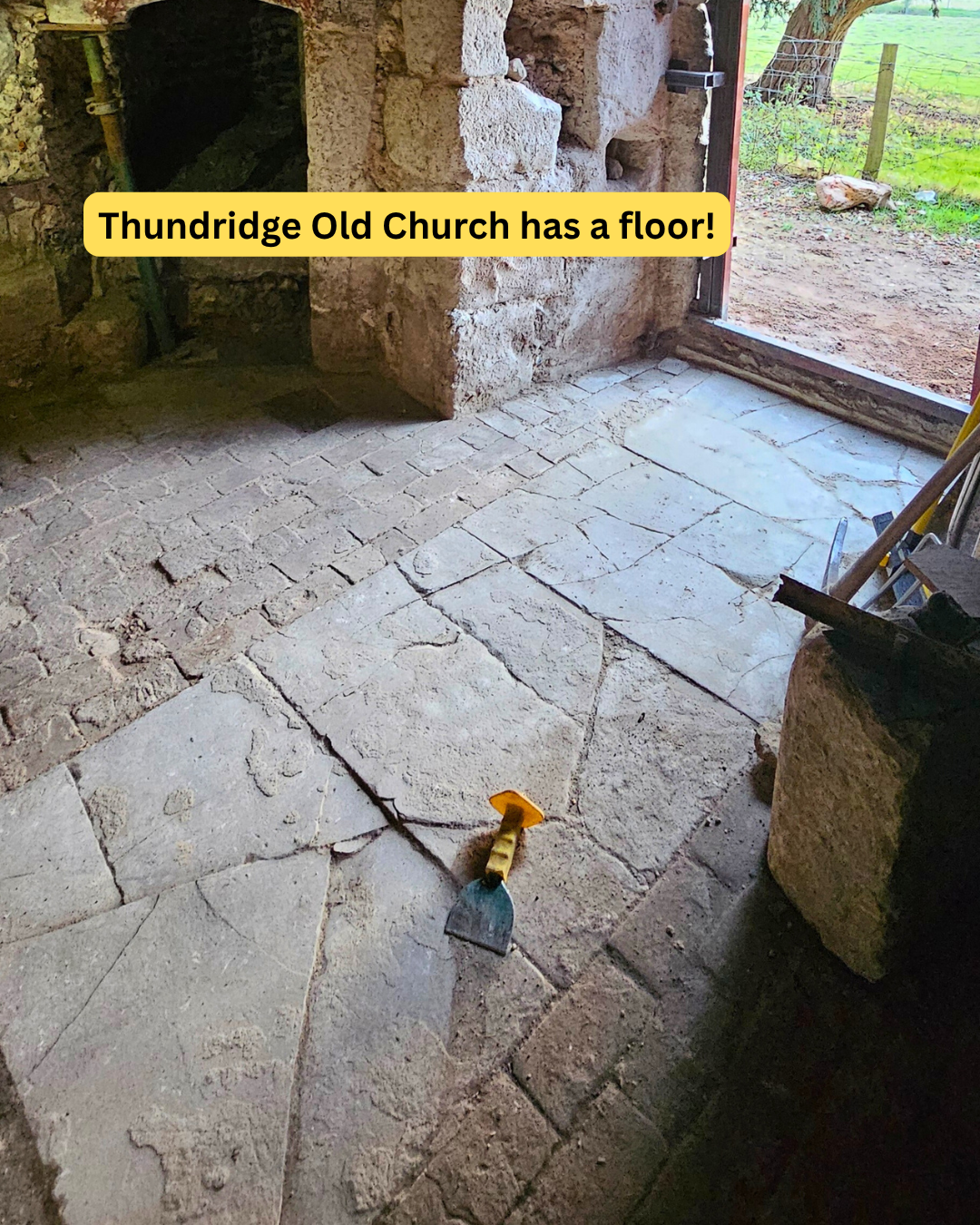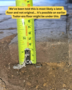 We have been told it is more likely this is a later floor surface not original to the tower and not at its original level, but whatever it’s age it is a beautiful feature we look forward one day to cleaning and presenting at its best.